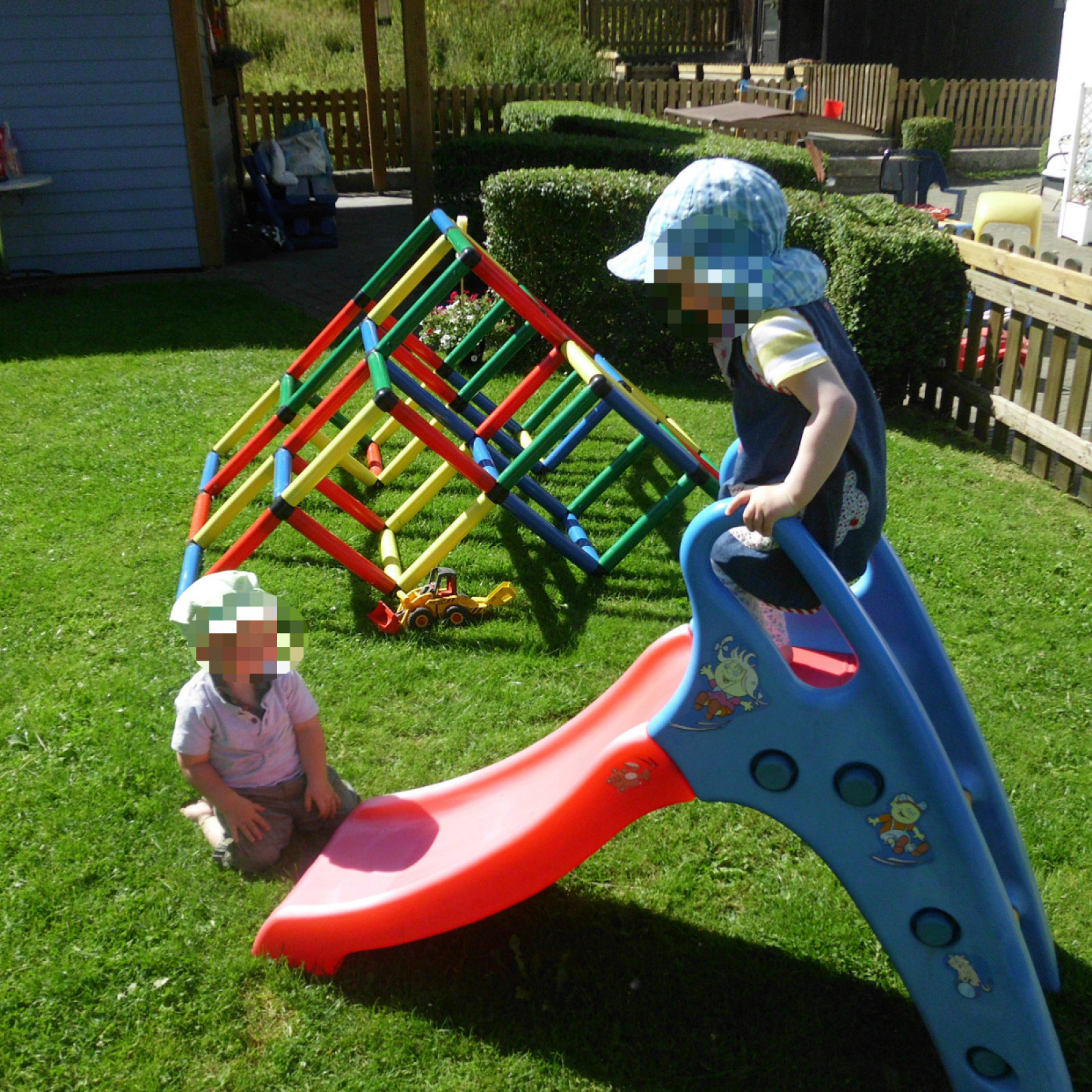 Freies Spiel, Bewegung, Sinneserfahrung und Kreativität nehmen den größten Teil in unserem Tagesablauf ein. Die Kinder lernen durch Bewegung ihren Körper besser kennen und trainieren dabei alle Sinne. Meine Räume sind so ausgestattet, dass es genügend Platz zum Toben gibt. Jeden Tag gehen wir raus und erkunden die Umgebung. Auf dem Spielplatz, beim Spaziergang durchs Dorf oder in meinem großzügigen Aussenbereich können die Kinder Sinneserfahrungen machen, alles ausprobieren und ihre Erfahrungen erweitern (s.dazu die Erlebnisgeschichte "Zwerge in Bewegung", die den Tagesablauf der Kinder beschreibt).