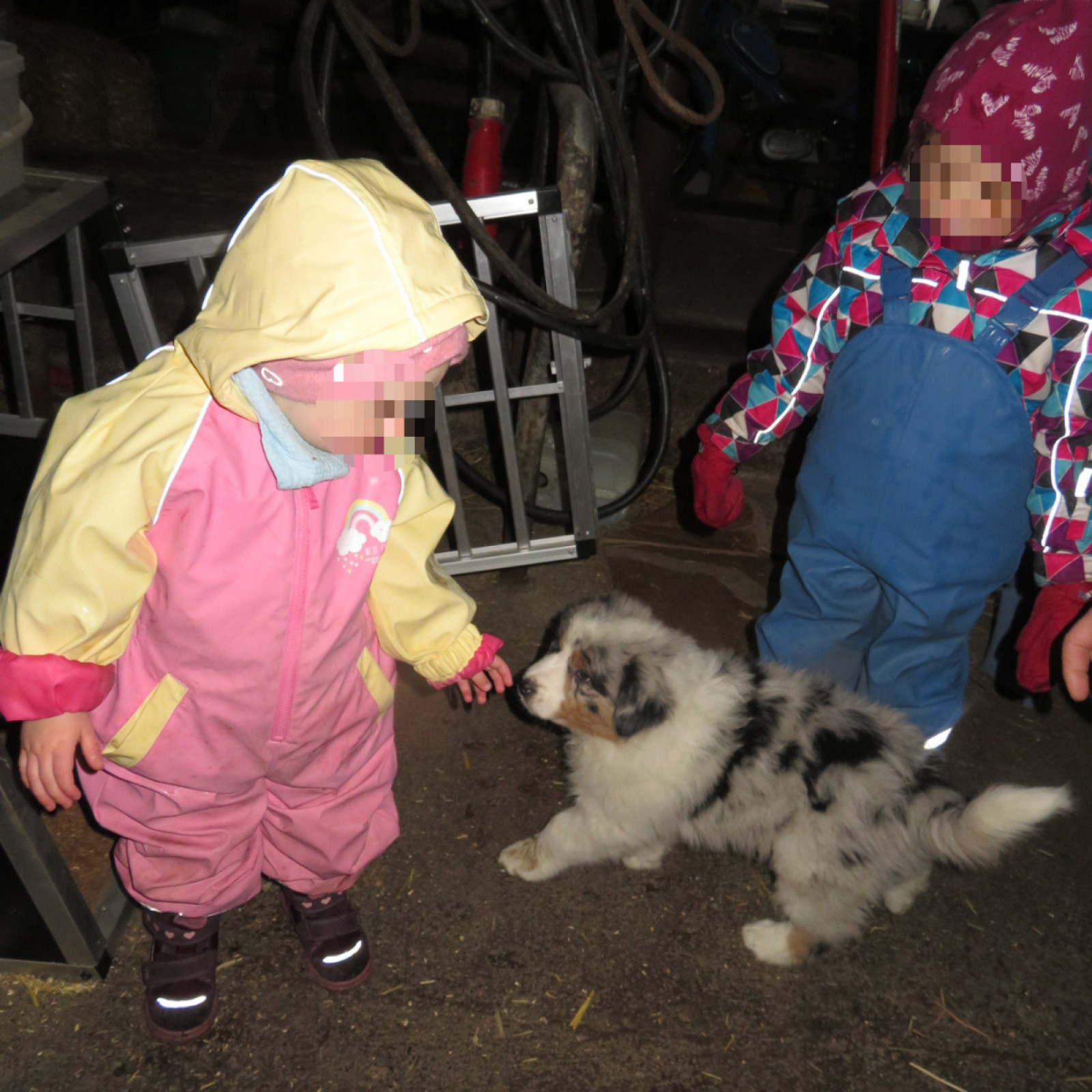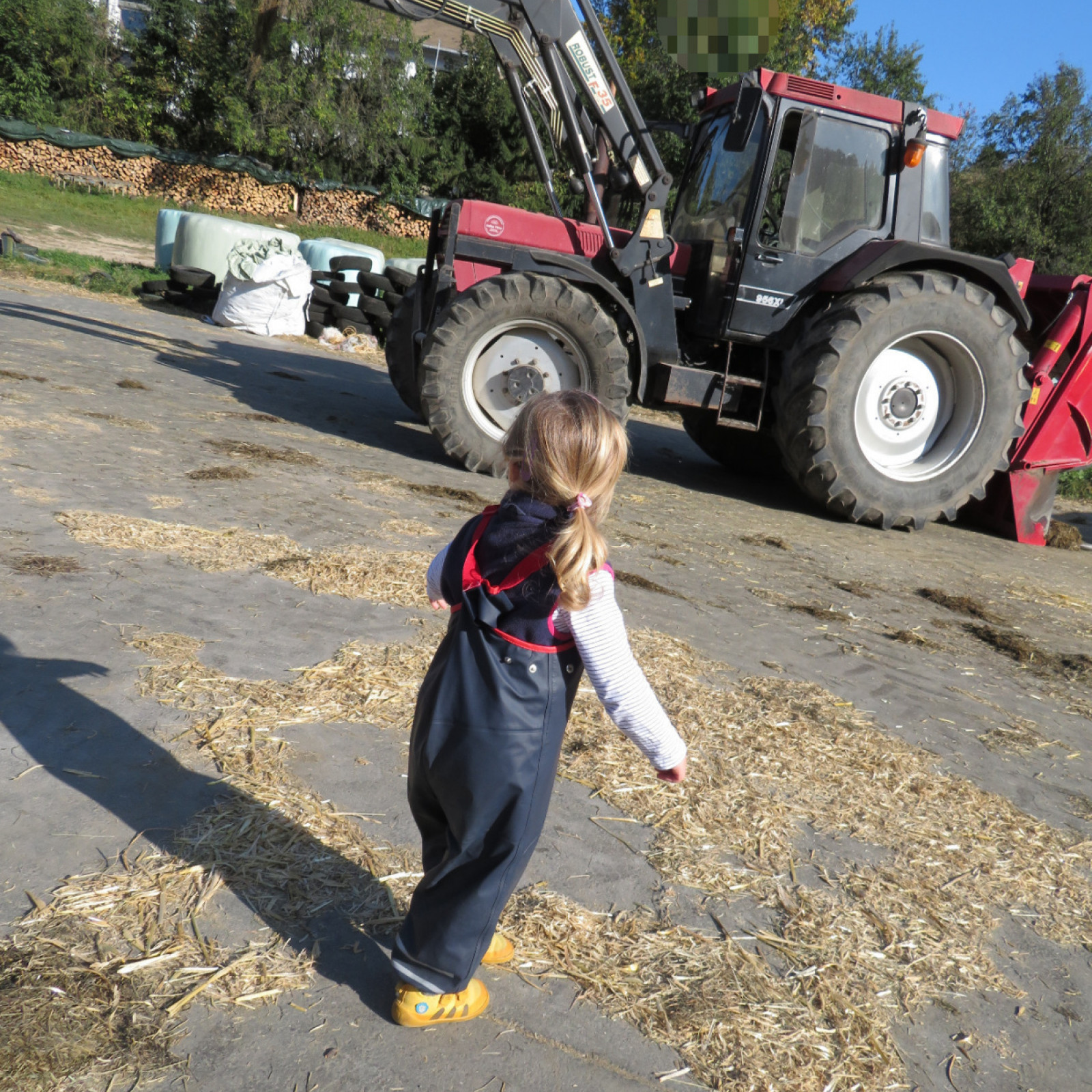 Jeden Tag machen wir einen (kurzen oder ausgiegigen) Spaziergang. Wir sind willkommen auf dem Bauernhof in der Nachbarschaft und dürfen die ländlichen Maschinen und die Tiere beobachten.